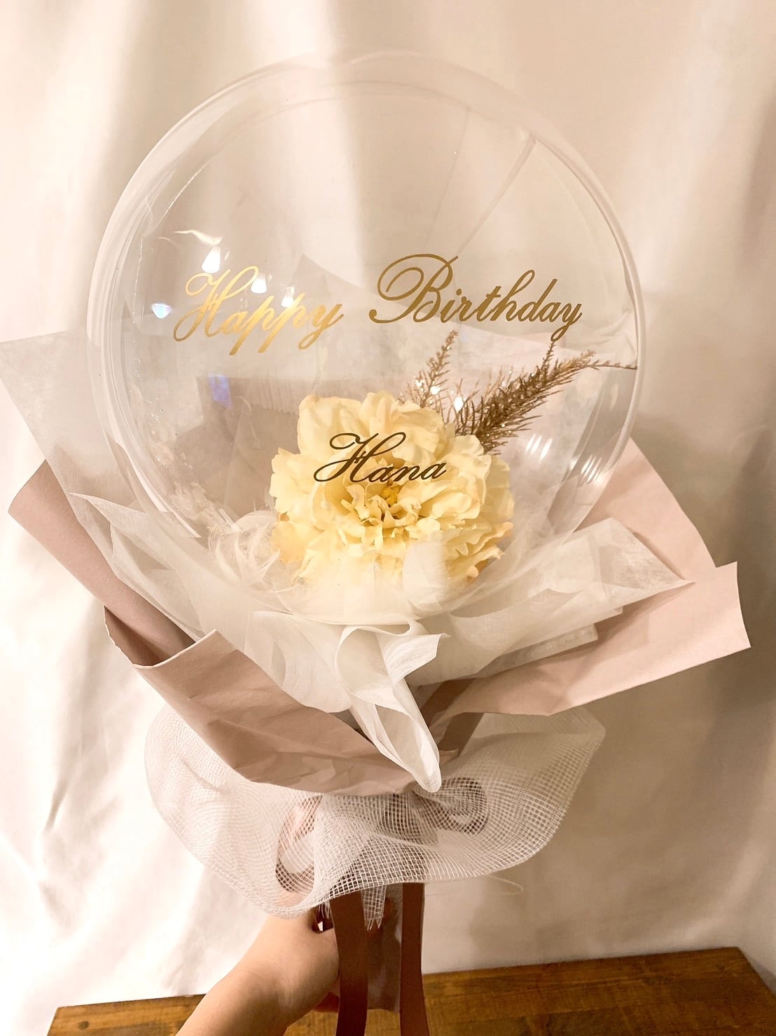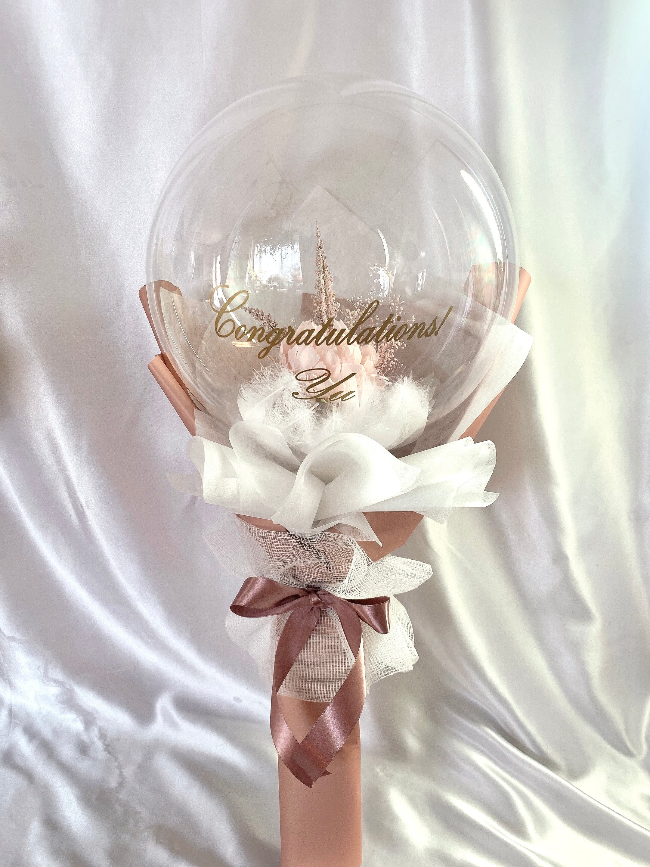 バルーンフラワー ブーケタイプ オフホワイト×ゴールド 文字・名入れ無料