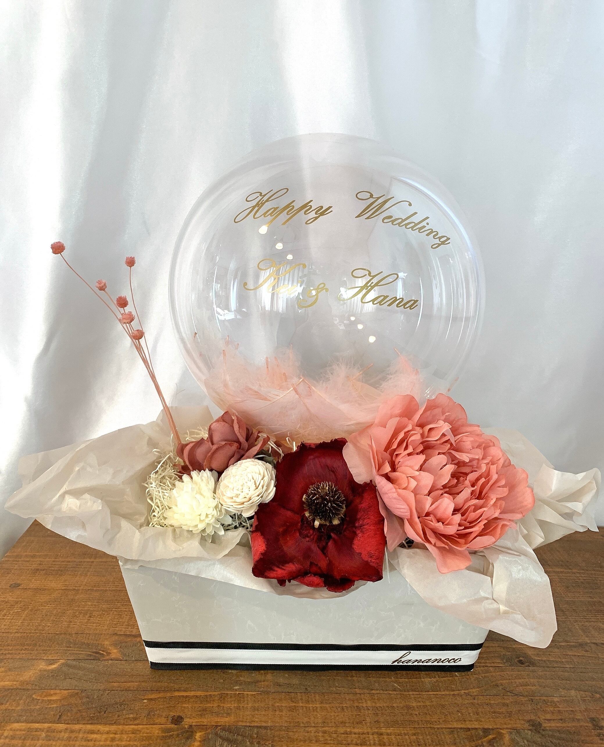 フラワーバルーン ピンク×レッド 置き型 文字・名入れ無料